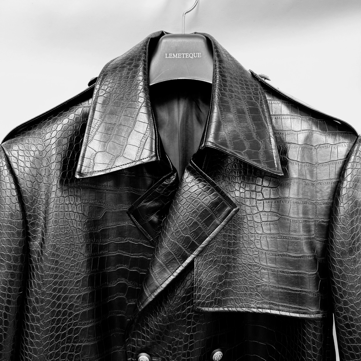 BLACK CROC LEATHER TRENCH COAT