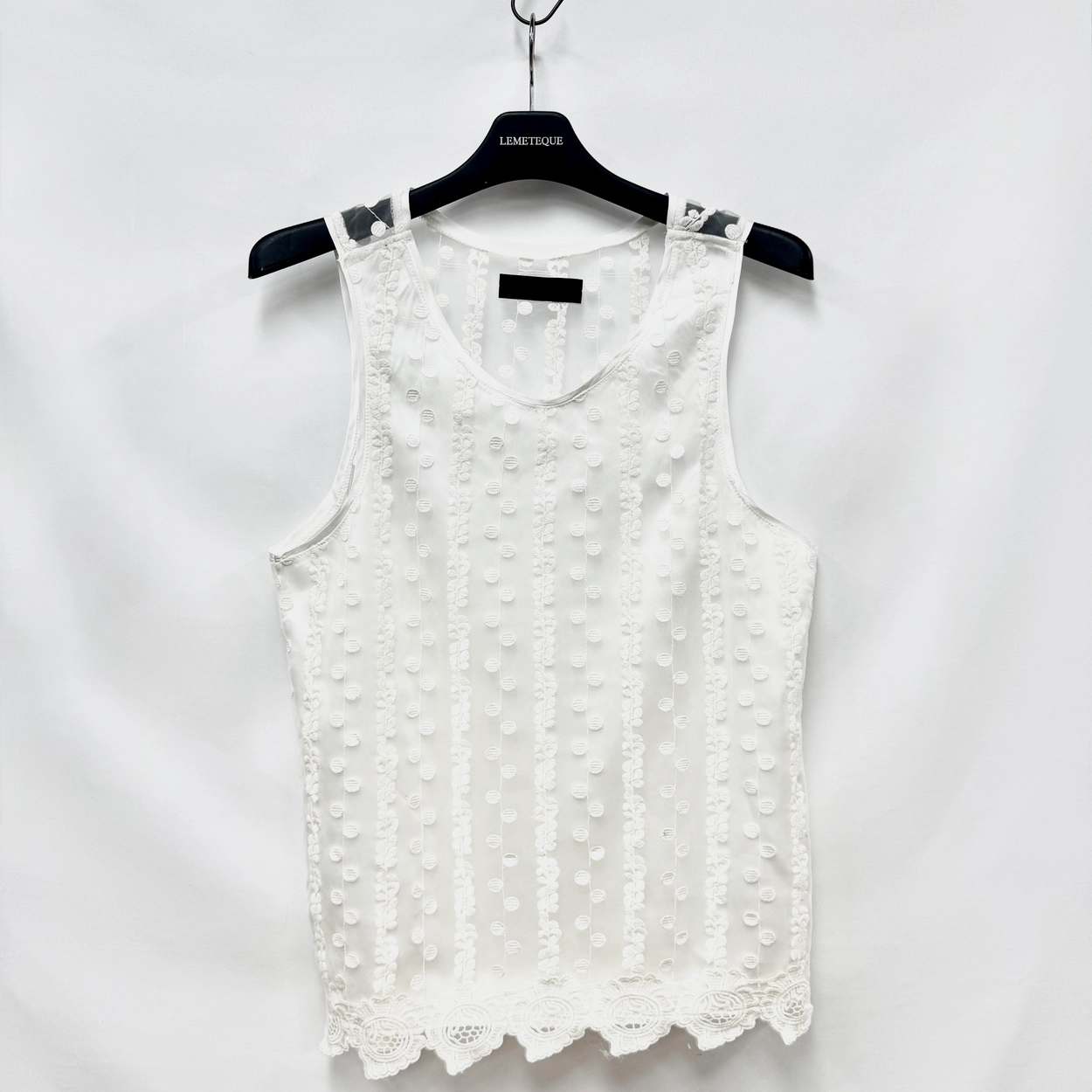 WHITE SHEER SILK LACE SLEEVELESS WITH WIDE SHOULDER