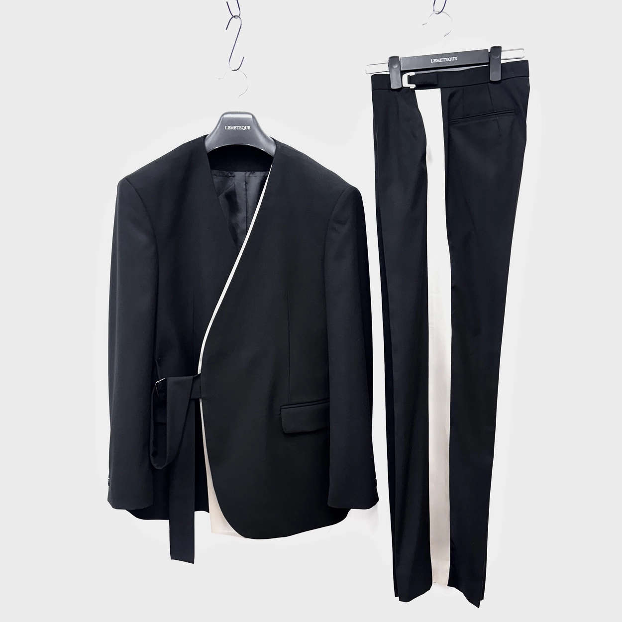 BLACK & BLACK SATIN SILK LAYERED DOUBLE SUIT
