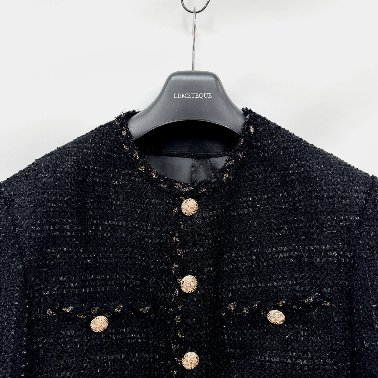 BLACK TWEED SINGLE COAT WITH GOLD BUTTON