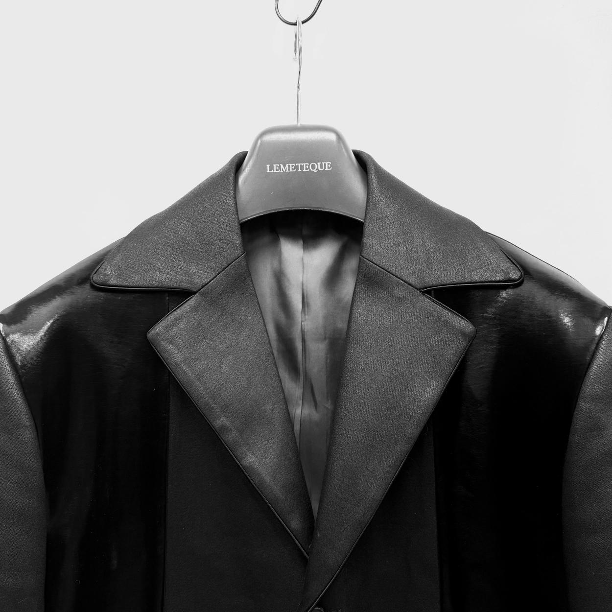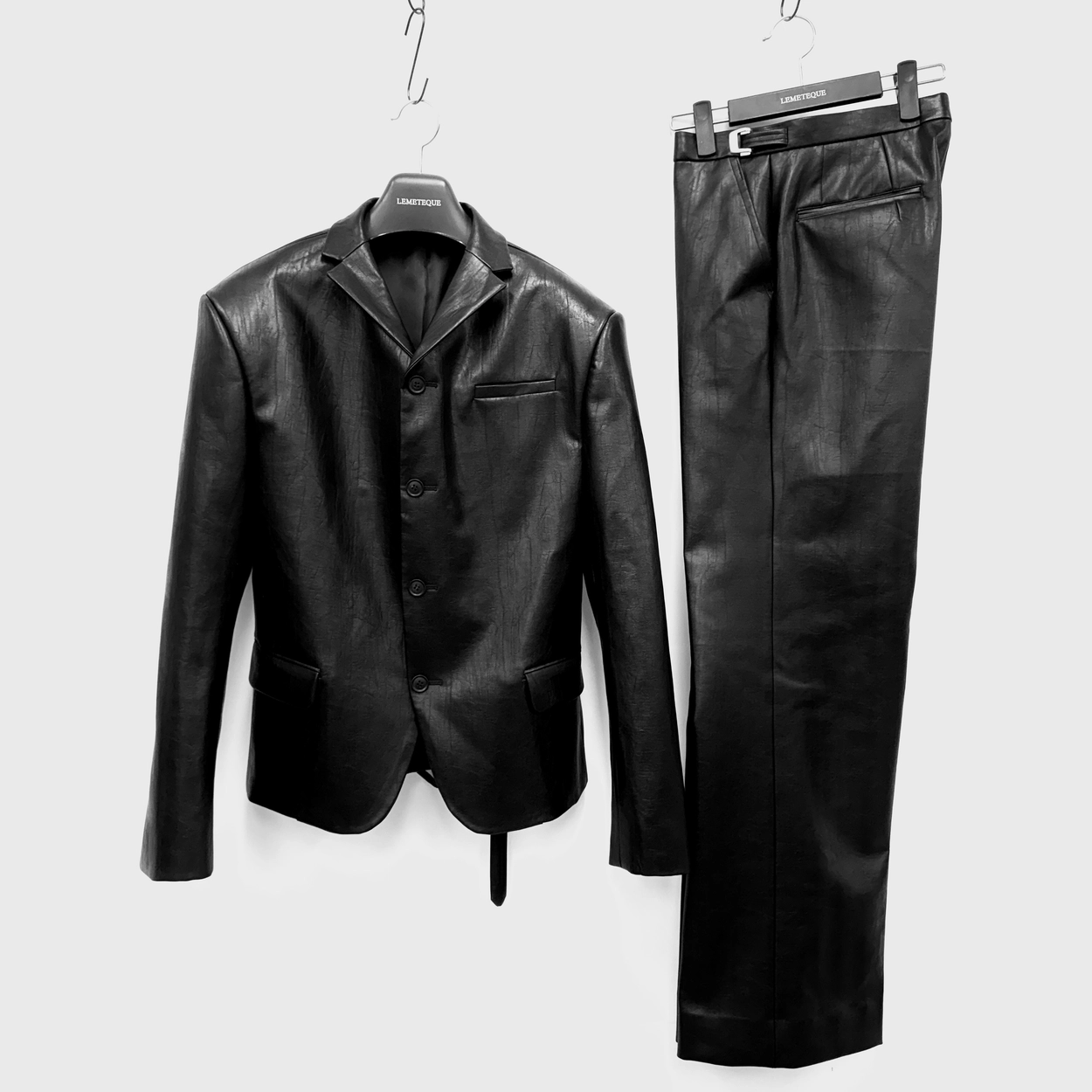 COATED BLACK & BLACK ENAMEL LEATHER SINGLE SUIT