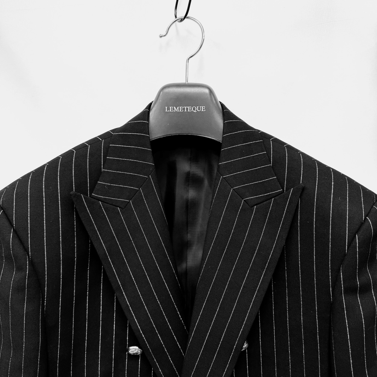 BLACK & BLACK STRIPED DOUBLE SUIT WITH PLEATED WIDE PANTS