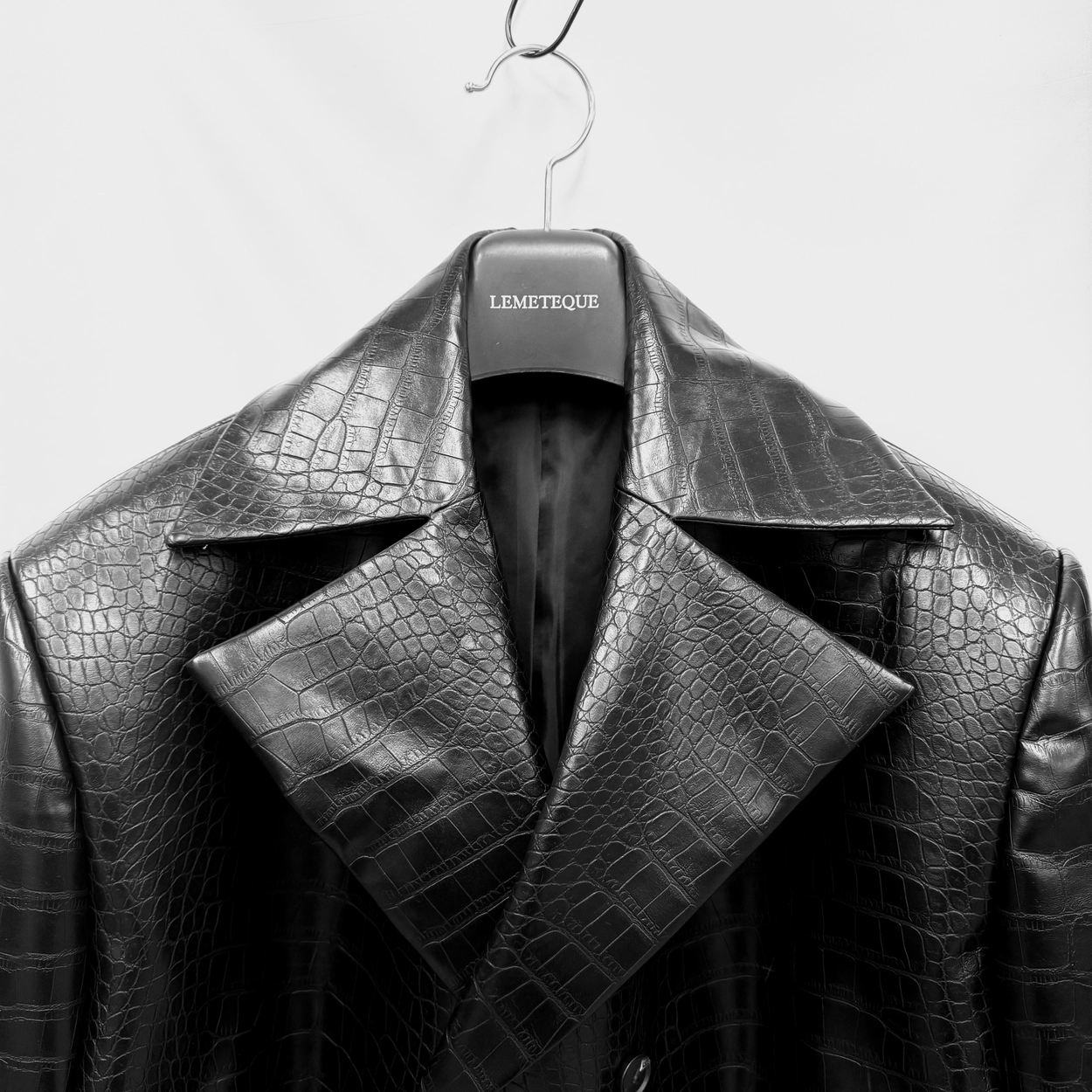 BLACK CROC LEATHER CROPPED TRENCH SUIT
