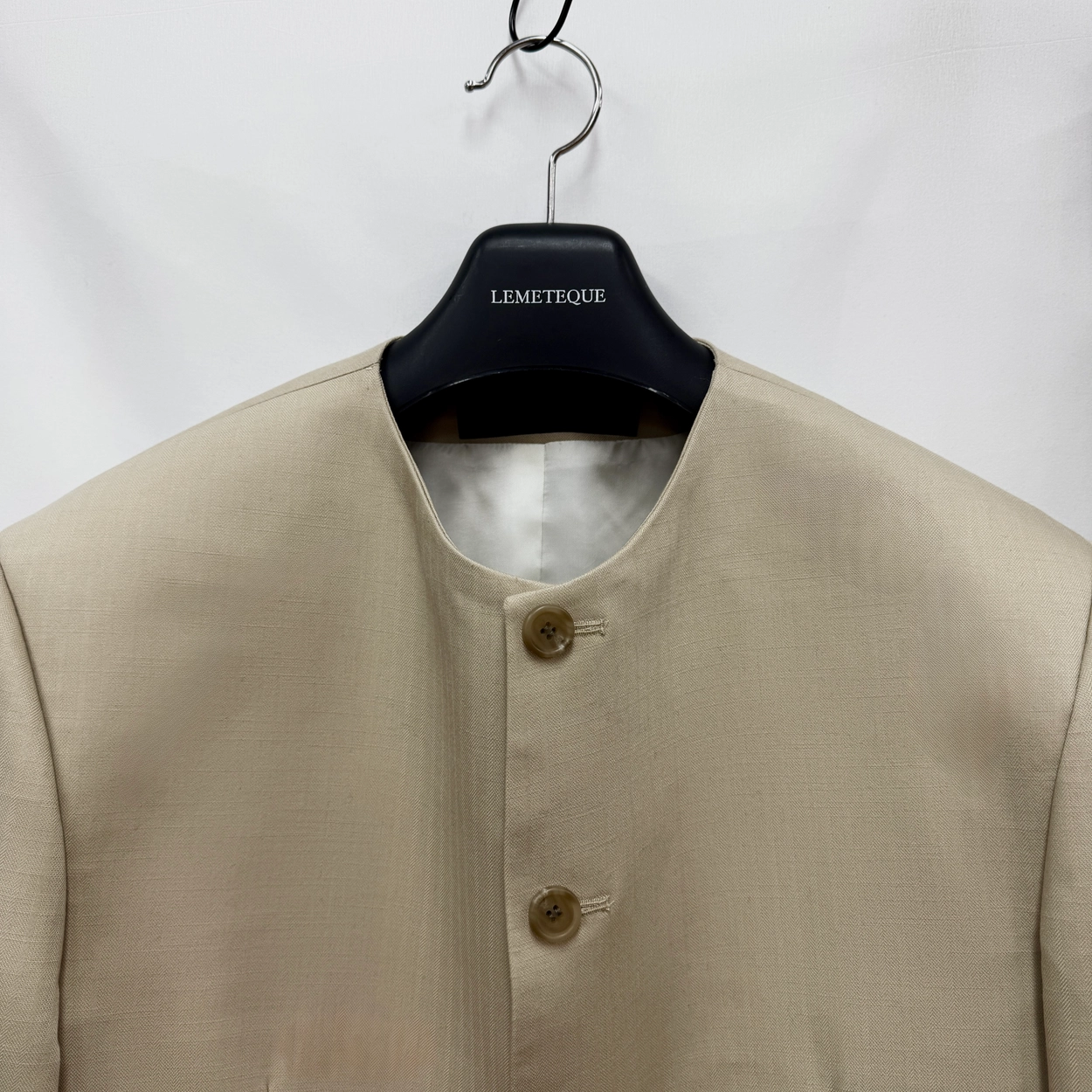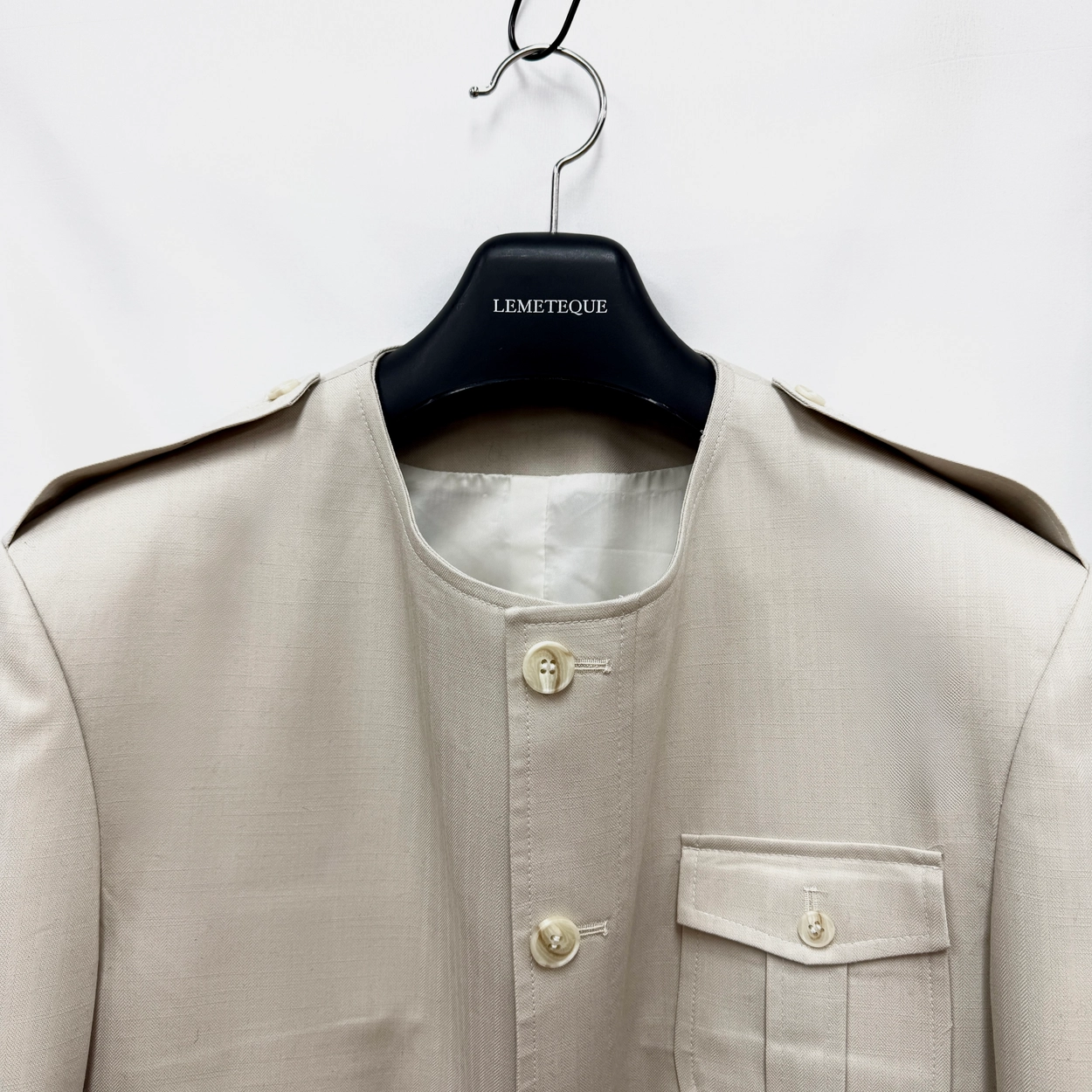 BEIGE LEATHER NAPOLEON CROPPED SINGLE SUIT WITH SIDE BUTTON PANTS