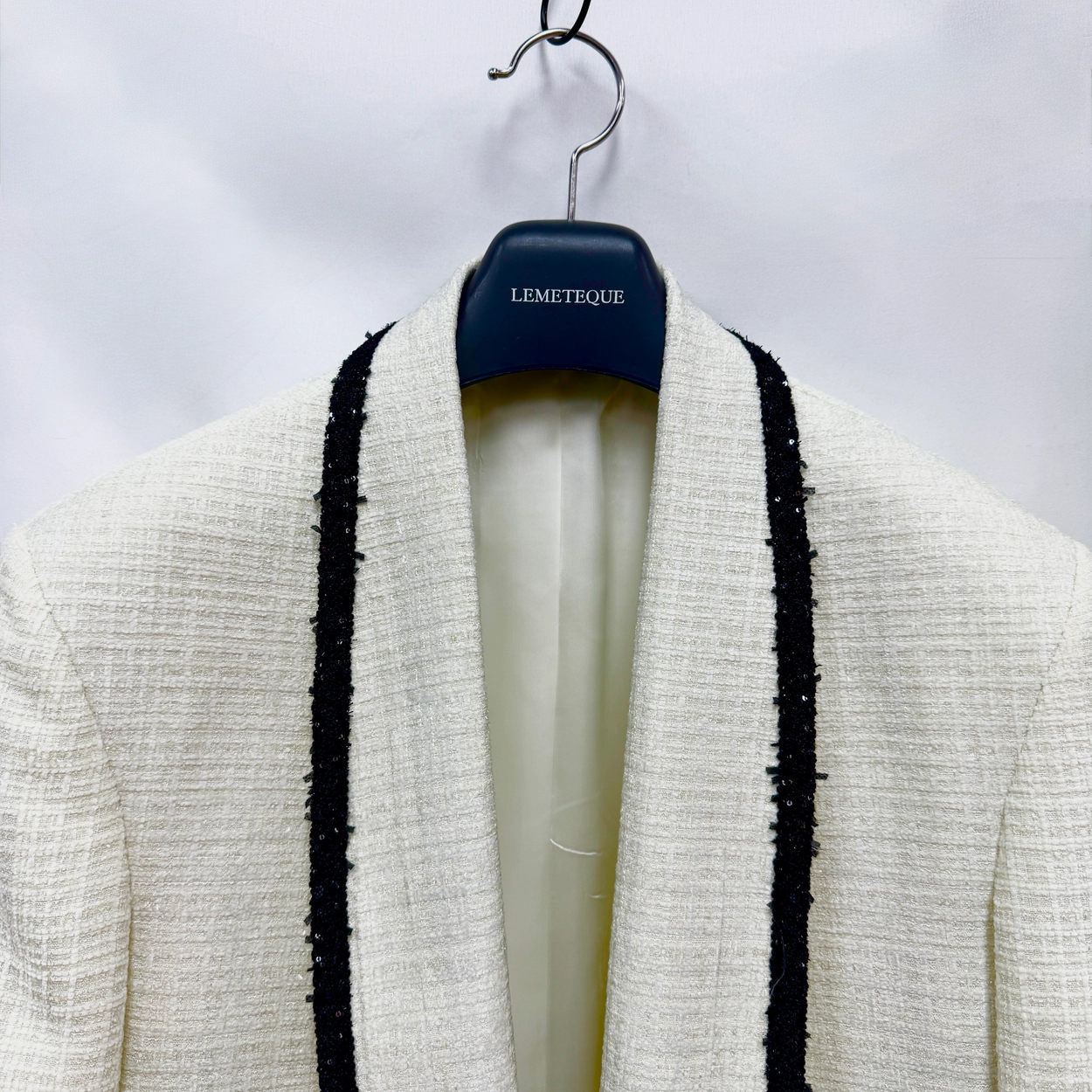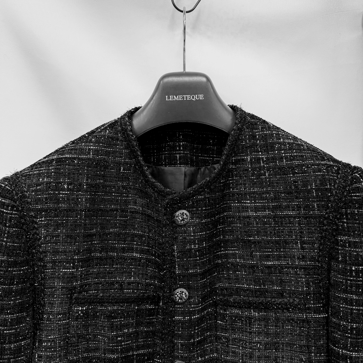 BLACK & WHITE TWEED CROPPED SINGLE JACKET