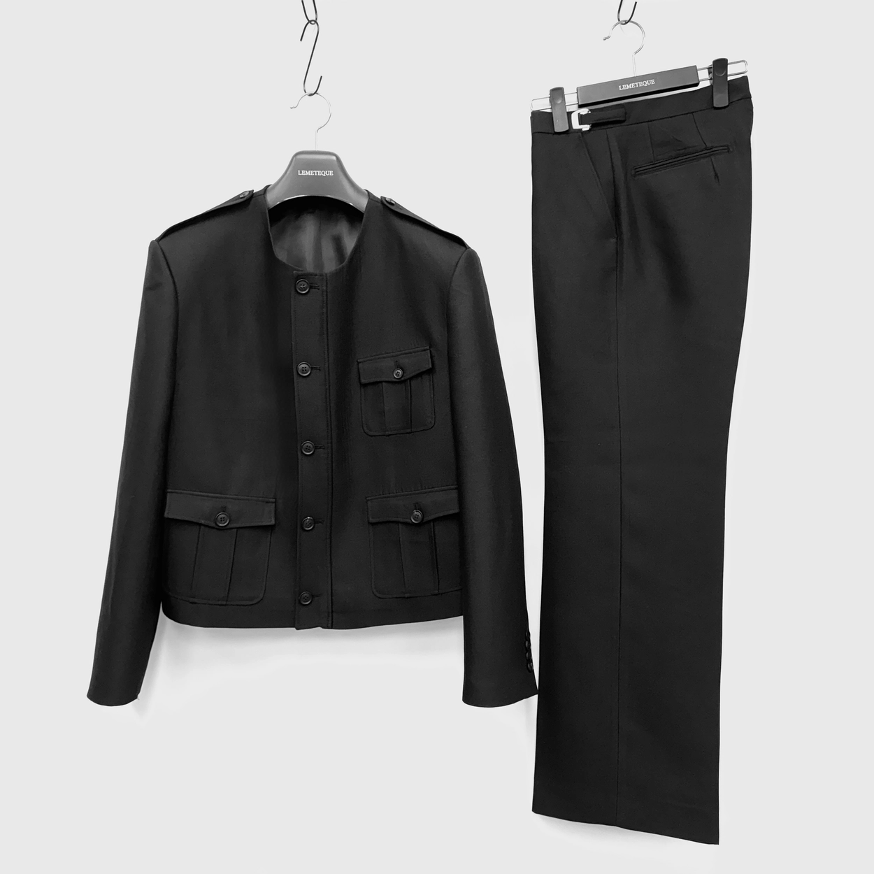 BLACK SILK WOOL CROPPED SAFARI SUIT