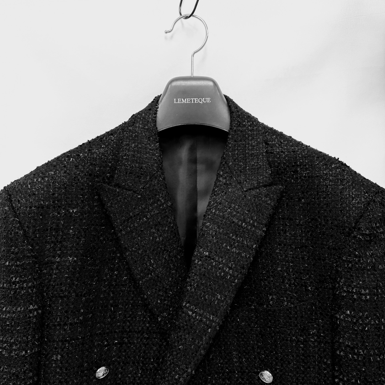 BLACK TWEED DOUBLE SUIT WITH SILVER BUTTON