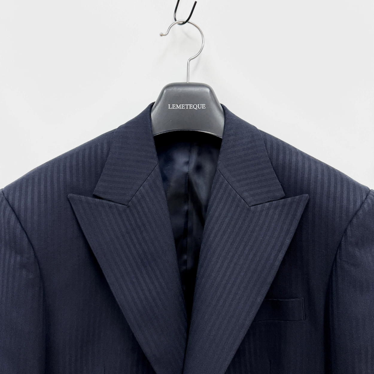 NAVY & NAVY STRIPED DOUBLE SUIT WITH PLEATED WIDE PANTS