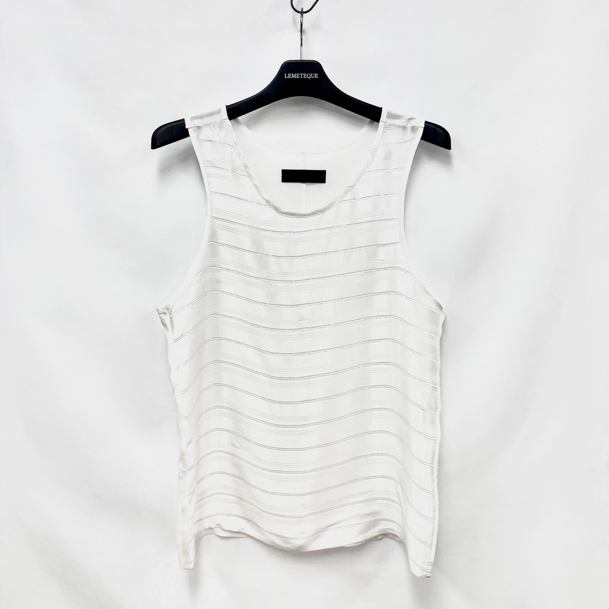 WHITE & SILVER STRIPED SATIN SILK SLEEVELESS WITH WIDE SHOULDER