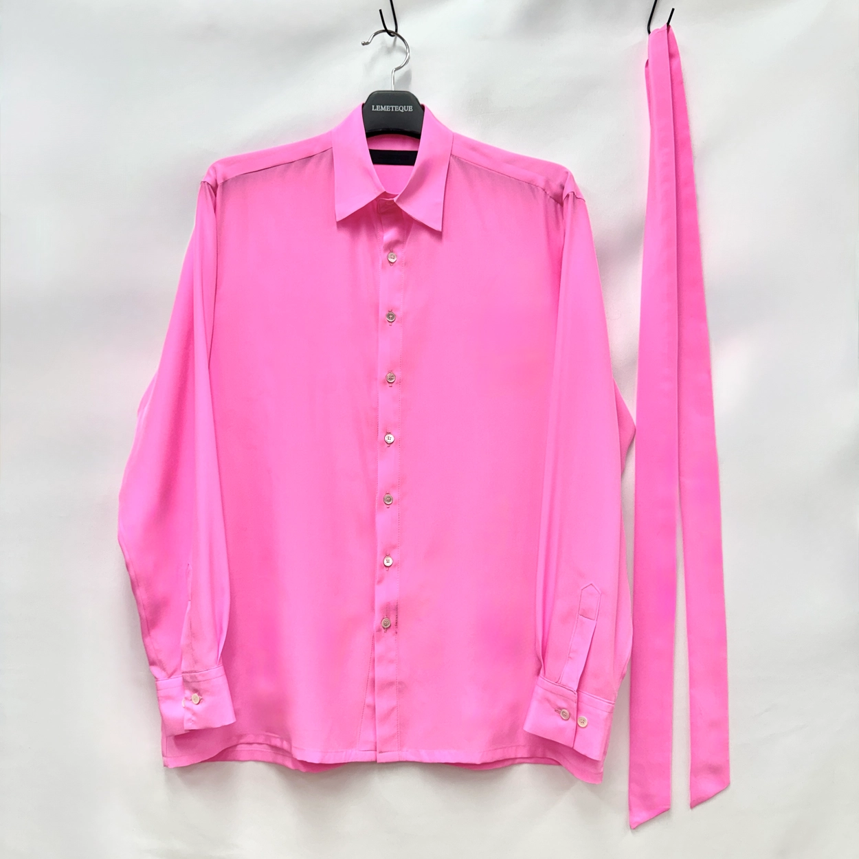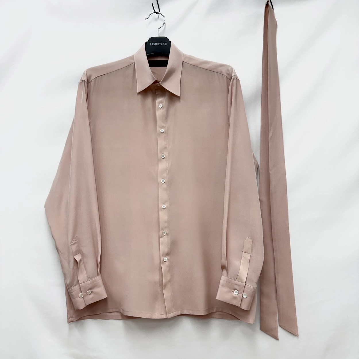 LIGHT PINK SHEER SILK SHIRT WITH SCARF