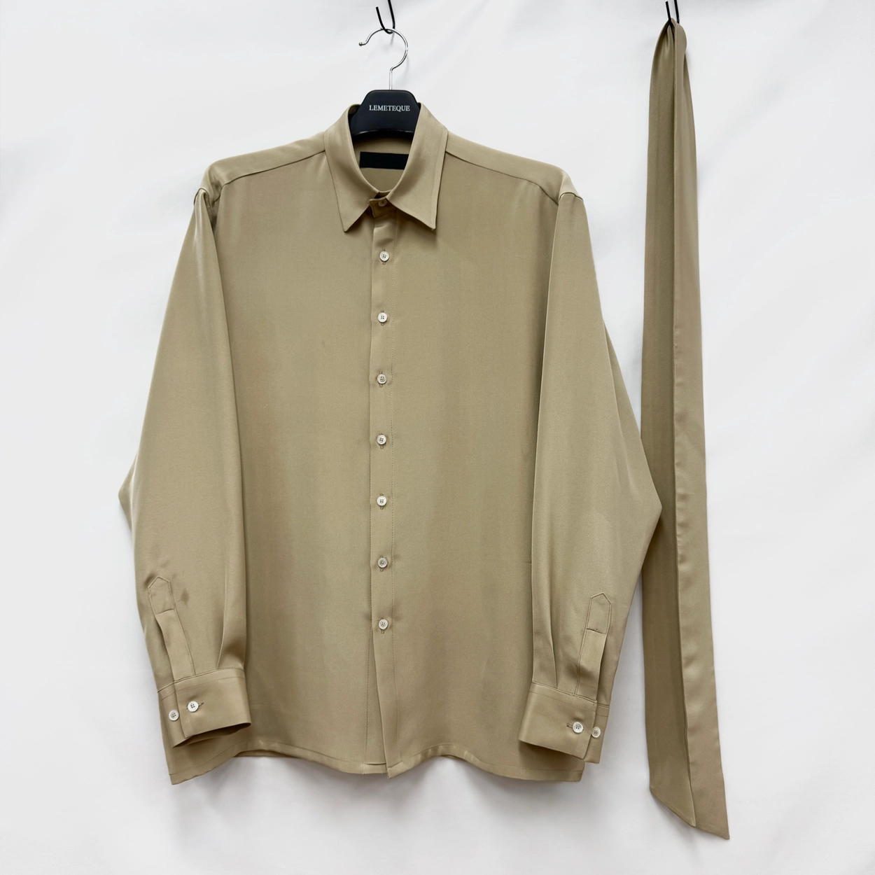 BEIGE GOLD SILK SHIRT WITH SCARF