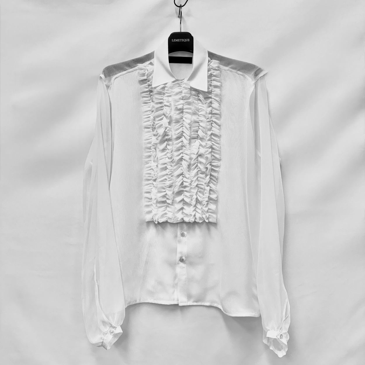 WHITE SHEER SILK FRILL SHIRT WITH LACE