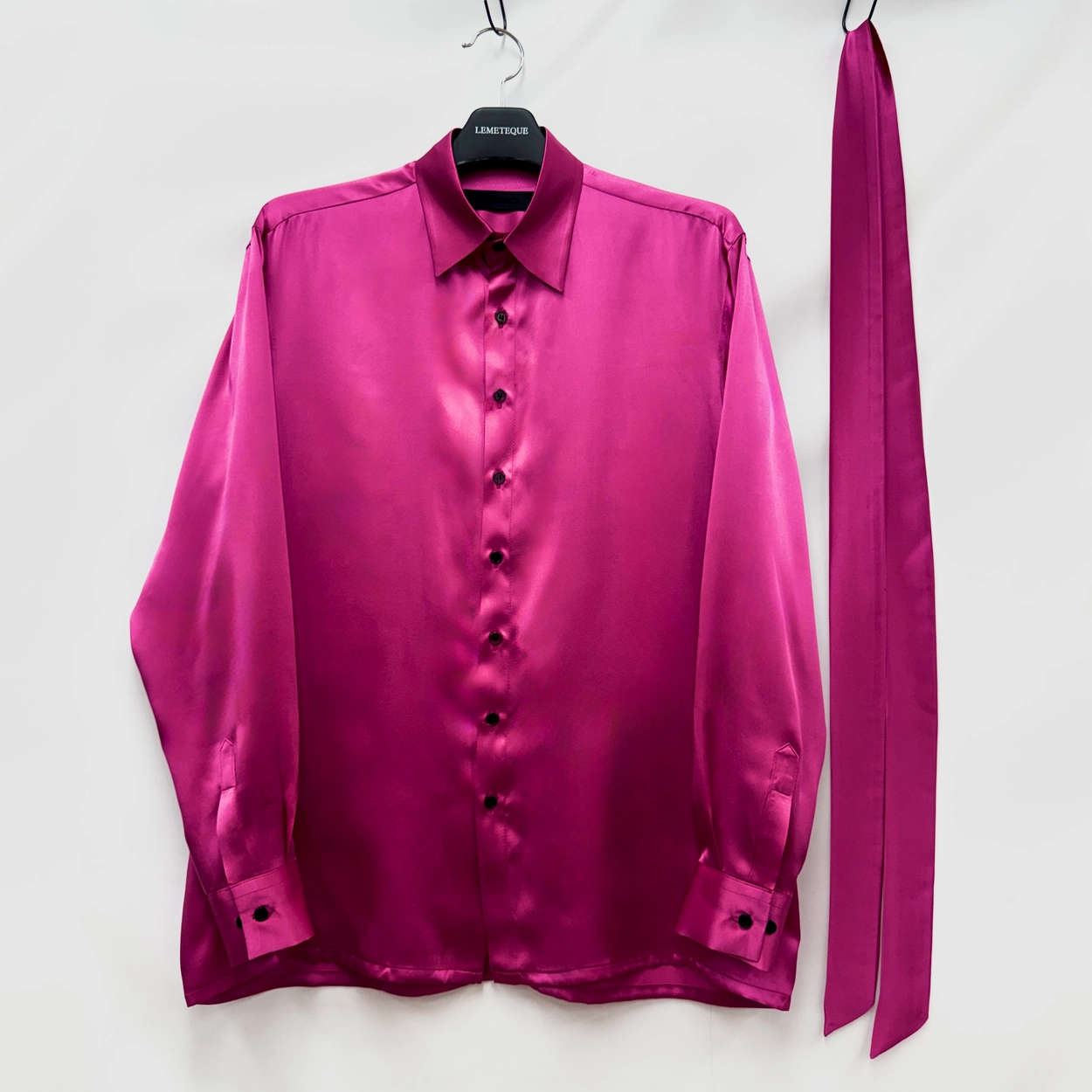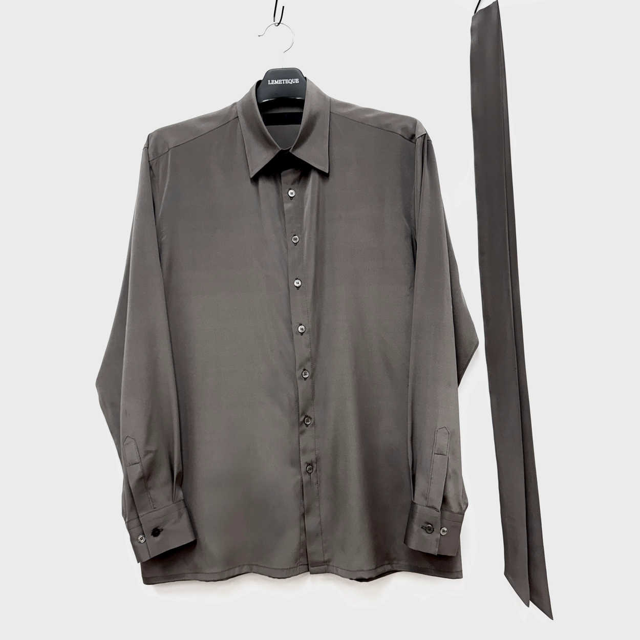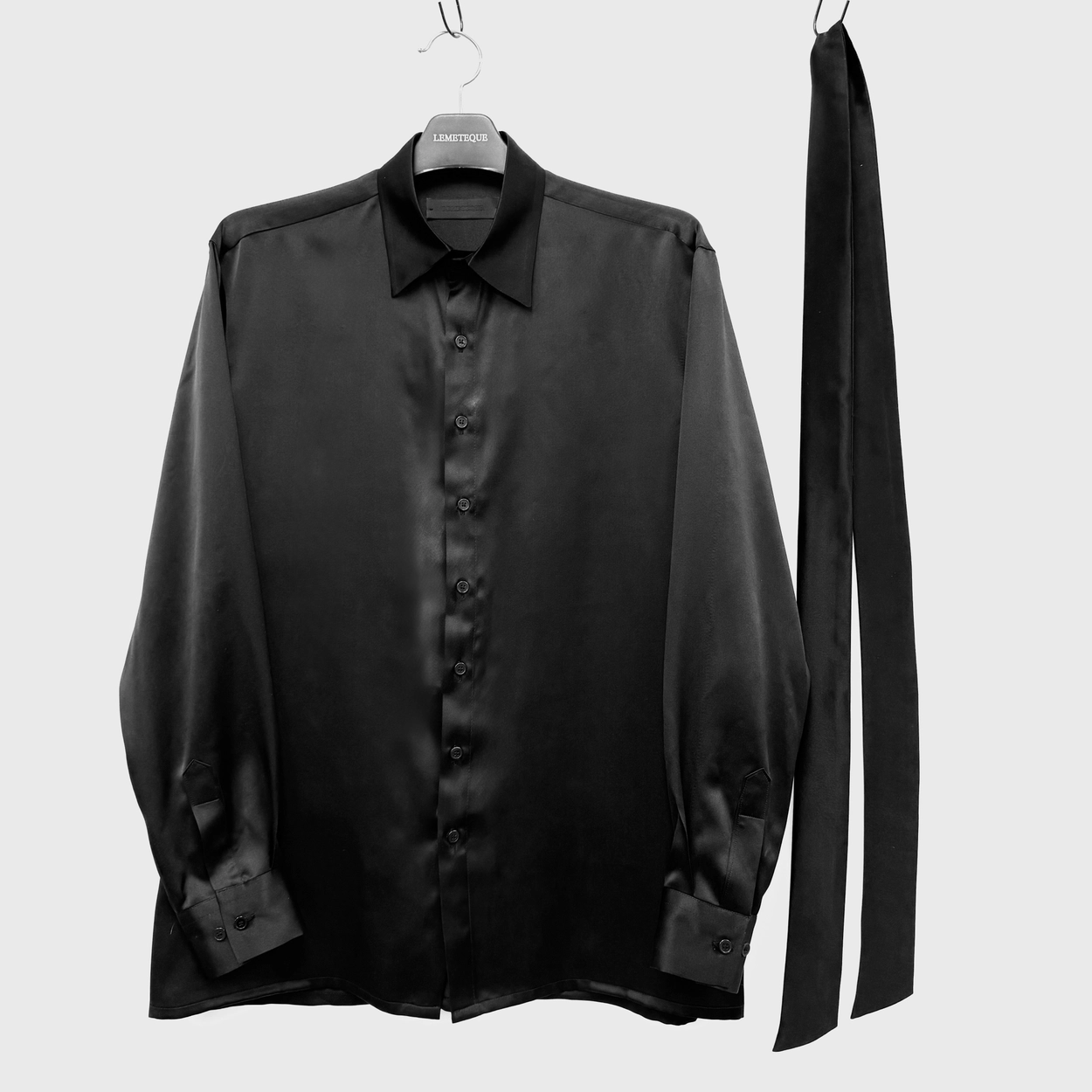 BLACK SATIN SILK DETACHABLE SCARF SHIRT