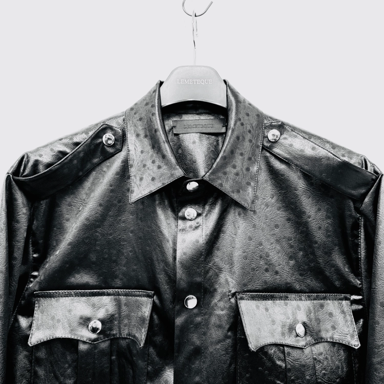 BLACK DOTTED LEATHER SAFARI SHIRT