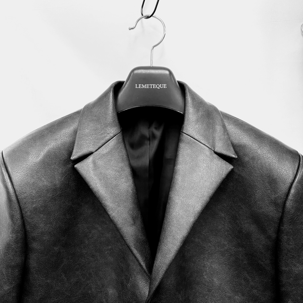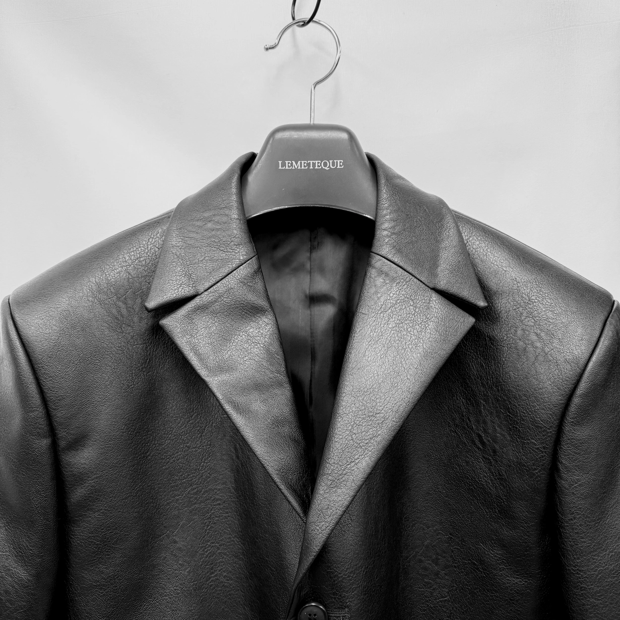 BLACK WRINKLED ENAMEL LEATHER SINGLE COAT