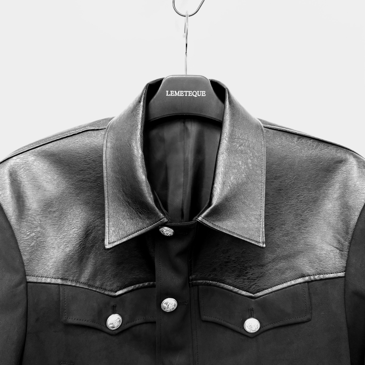 BLACK DOTTED LEATHER SAFARI SHIRT