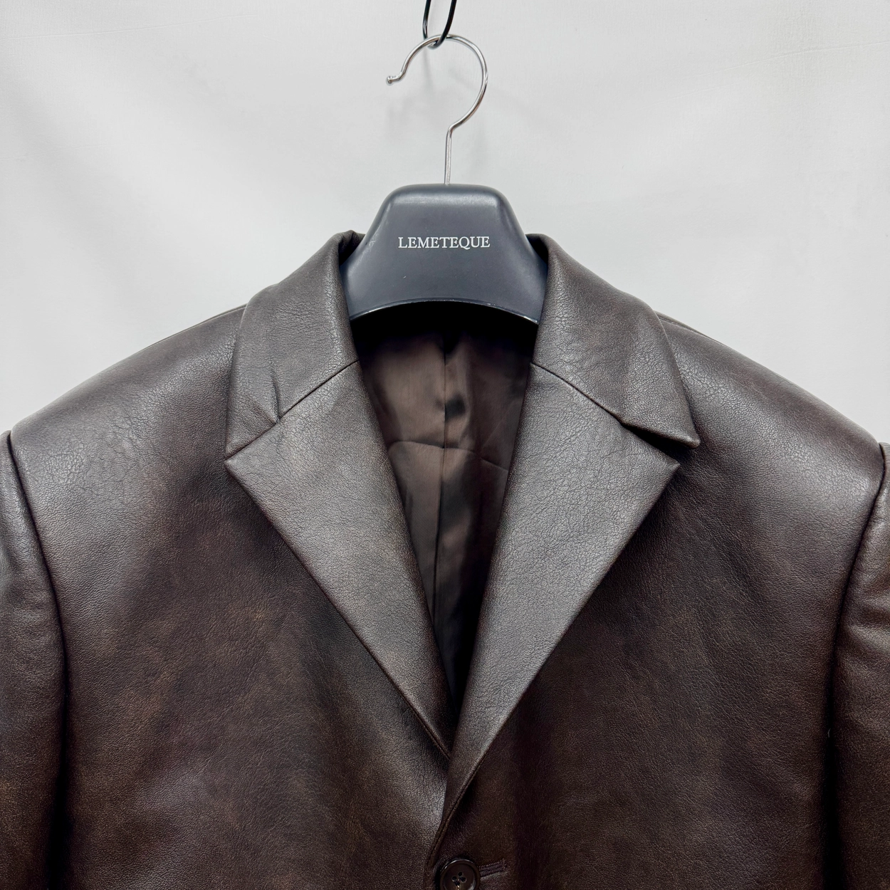 DARK BROWN LEATHER CROPPED SINGLE SUIT WITH SIDE BUTTON PANTS