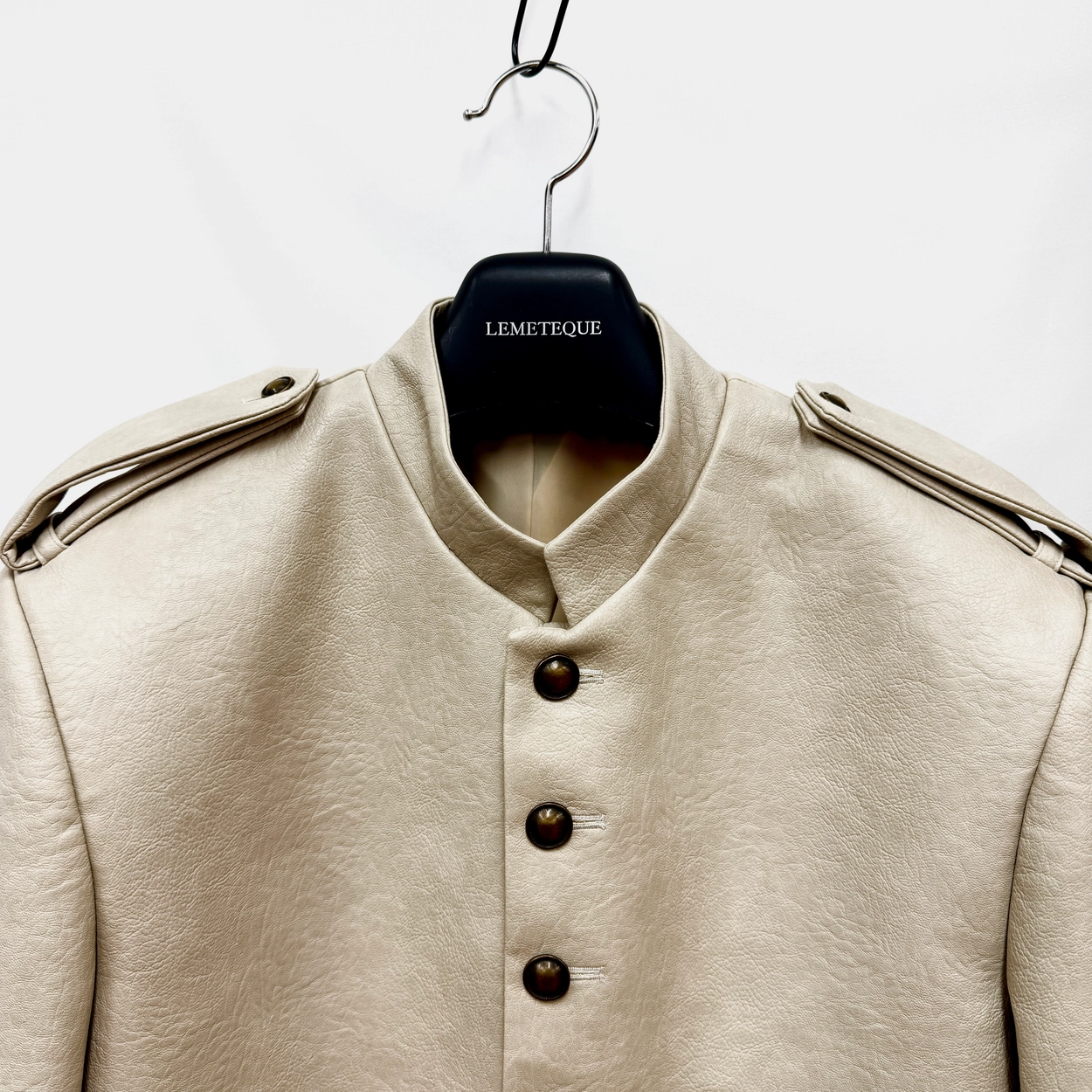LIGHT BEIGE VINTAGE EFFECT LEATHER CROPPED NAPOLEON JACKET