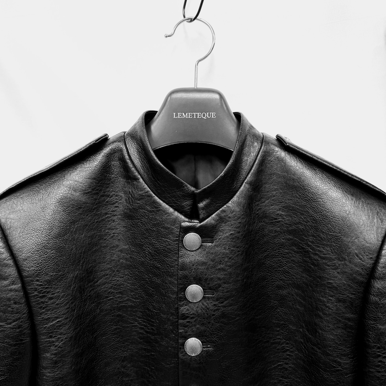 BLACK LEATHER NAPOLEON CROPPED SINGLE SUIT WITH SIDE BUTTON PANTS