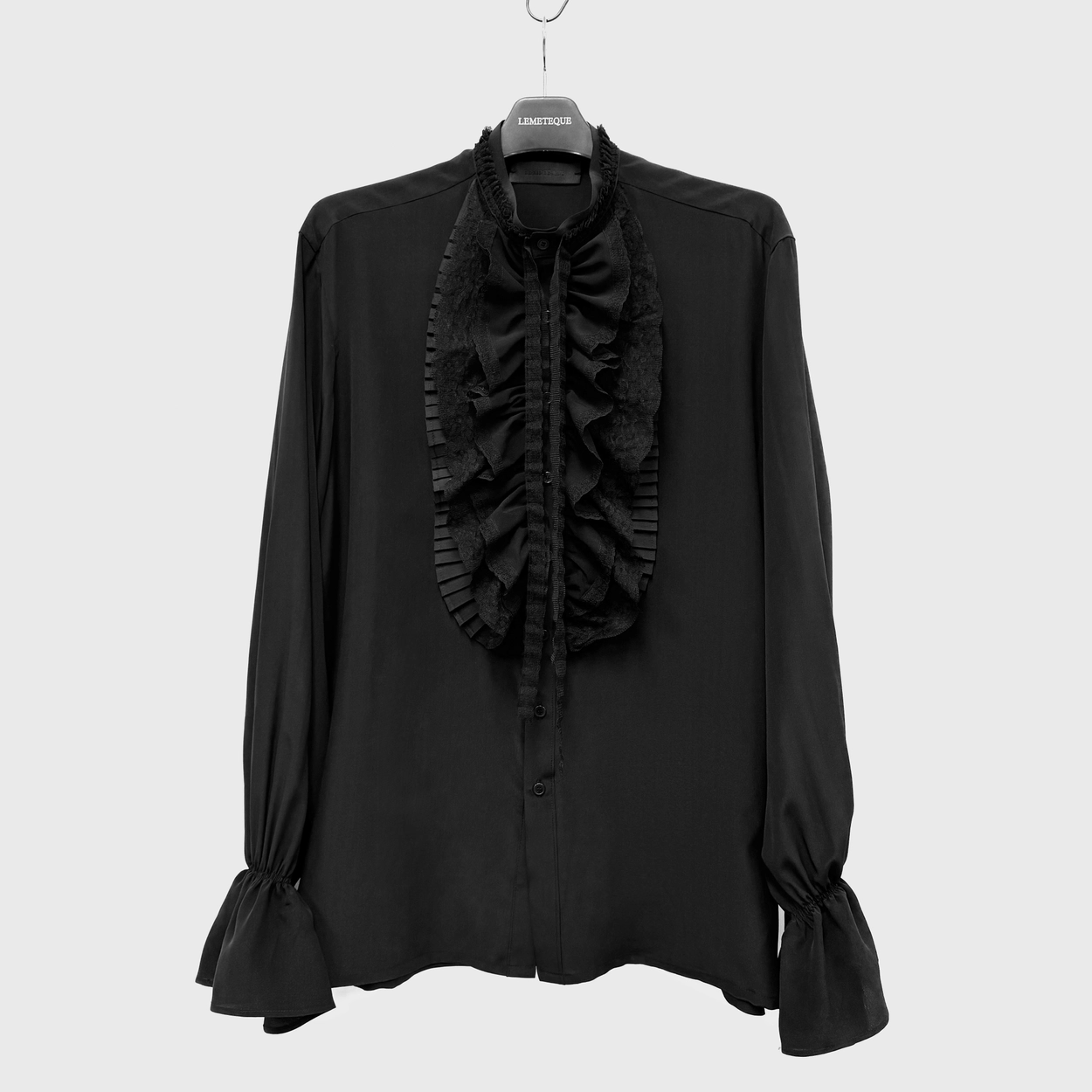 LEMETEQUE - BLACK LONG FRILL SILK SHIRT