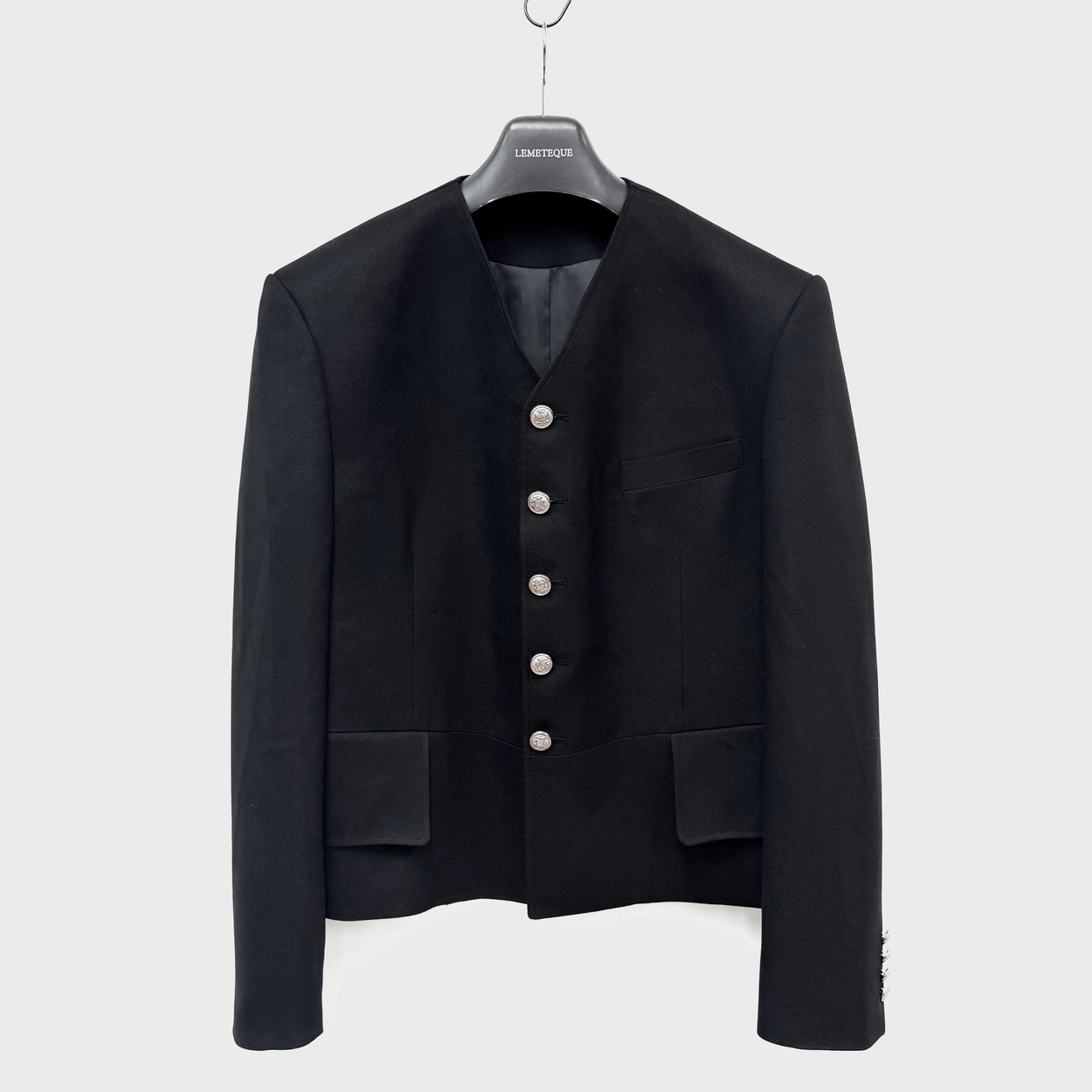 BLACK COLLARLESS CROPPED SINGLE JACKET