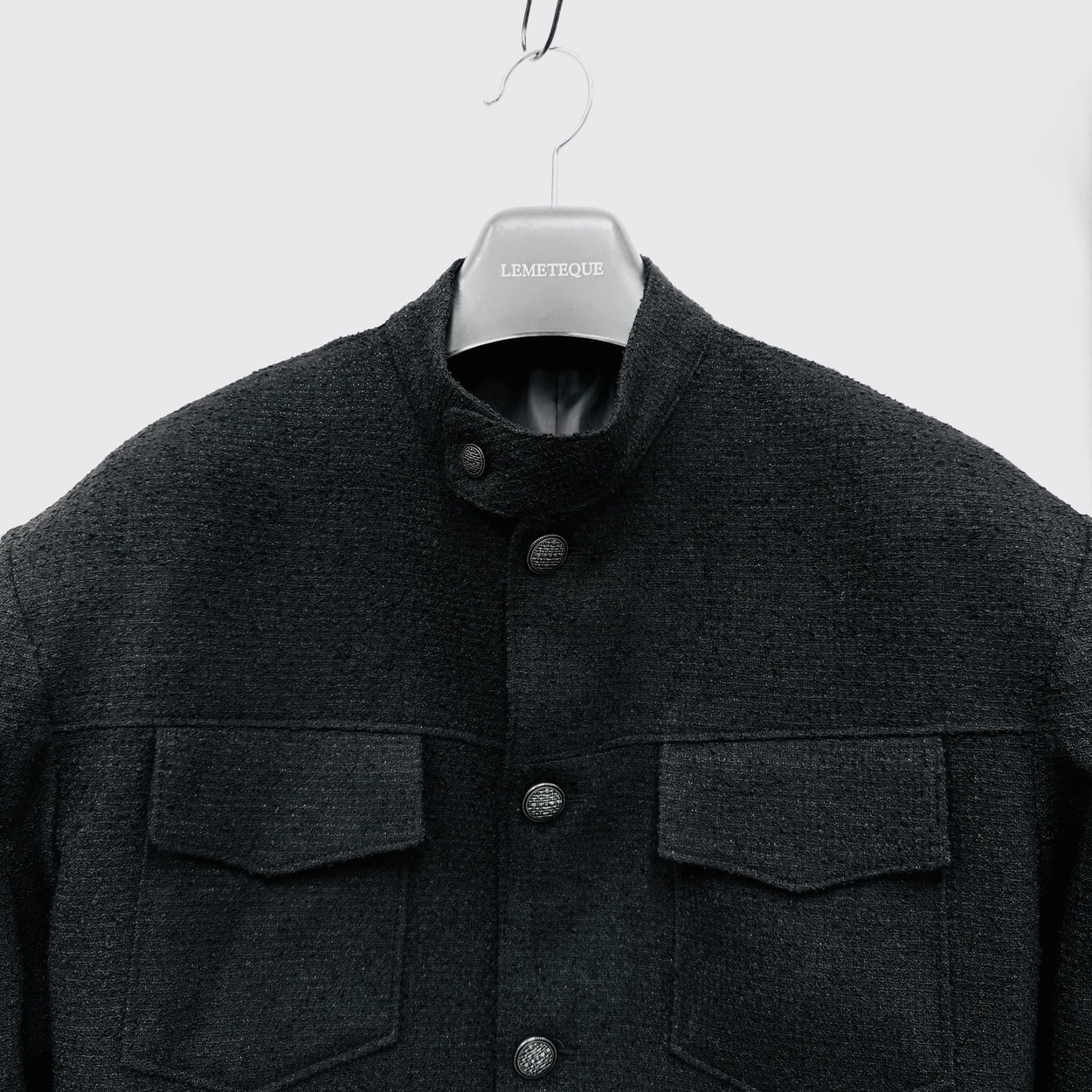 BLACK TWEED MANDARIN CROPPED SINGLE SUIT